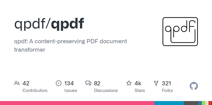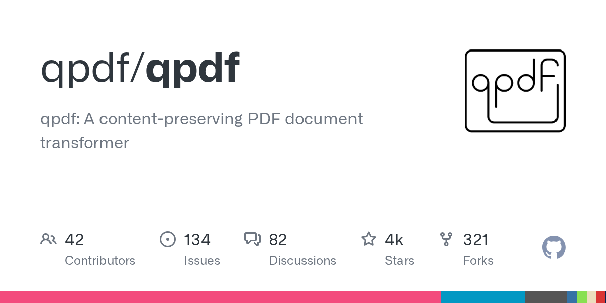 QPDF is a command-line program and C++ library for structural, content-preserving transformations on PDF files. It’s essential for PDF manipulation, optimization, and preservation workflows.